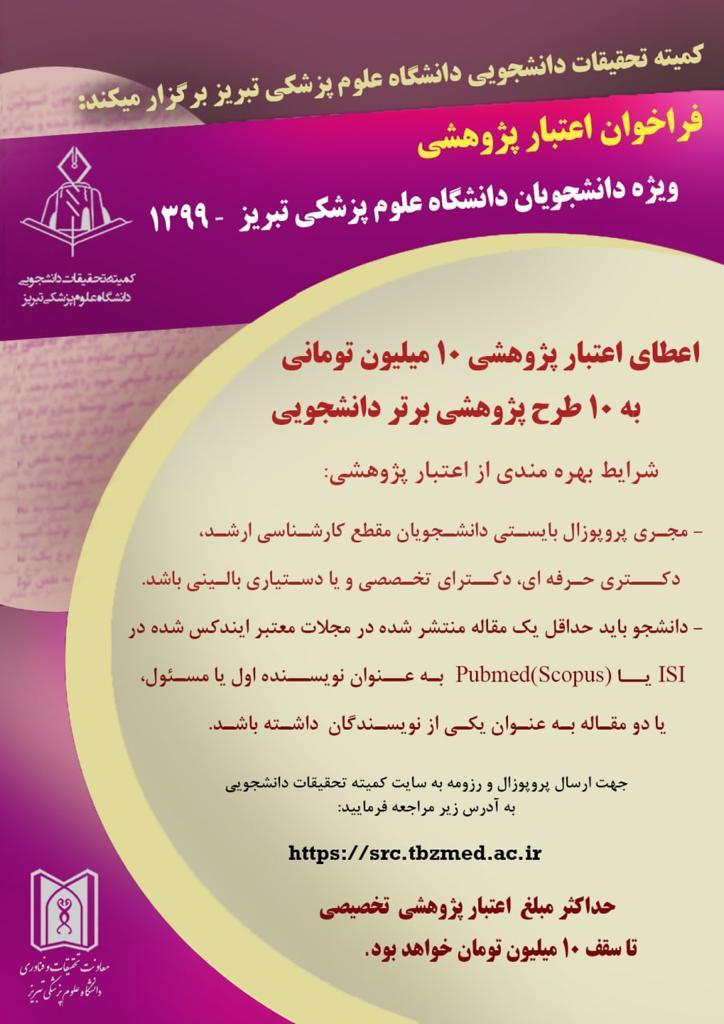 فراخوان اعتبار پژوهشی ویژه دانشجویان دانشگاه علوم پزشکی تبریز -1399
