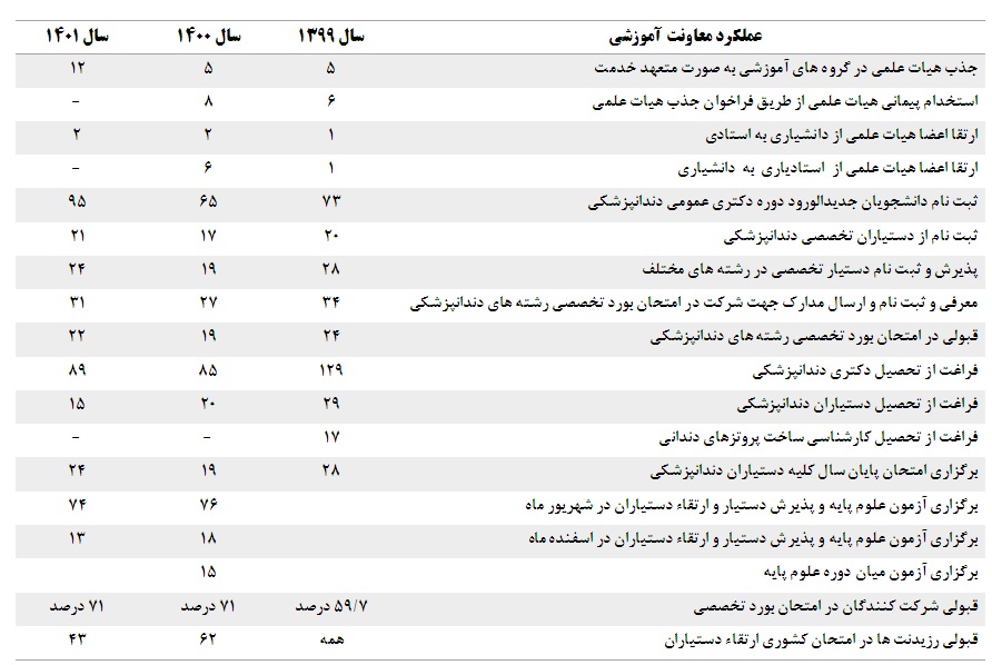 گزارش عملکرد سالانه دانشکده دندانپزشکی درحیطه آموزشی در سه سال گذشته (1401-99)